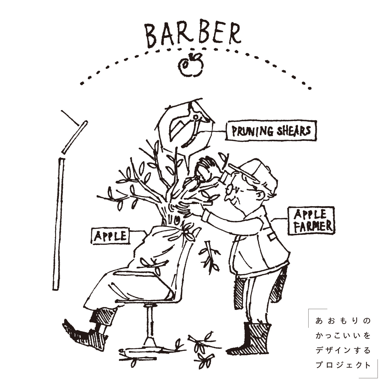 見ていると自然と、季節を超えた先にある「大きく実り、蜜もたっぷりの美味しいりんご」が想像されてくる、というのがこのイラストの演出です。