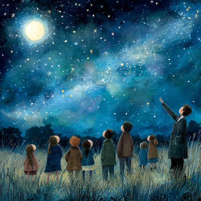 星空を見上げながら