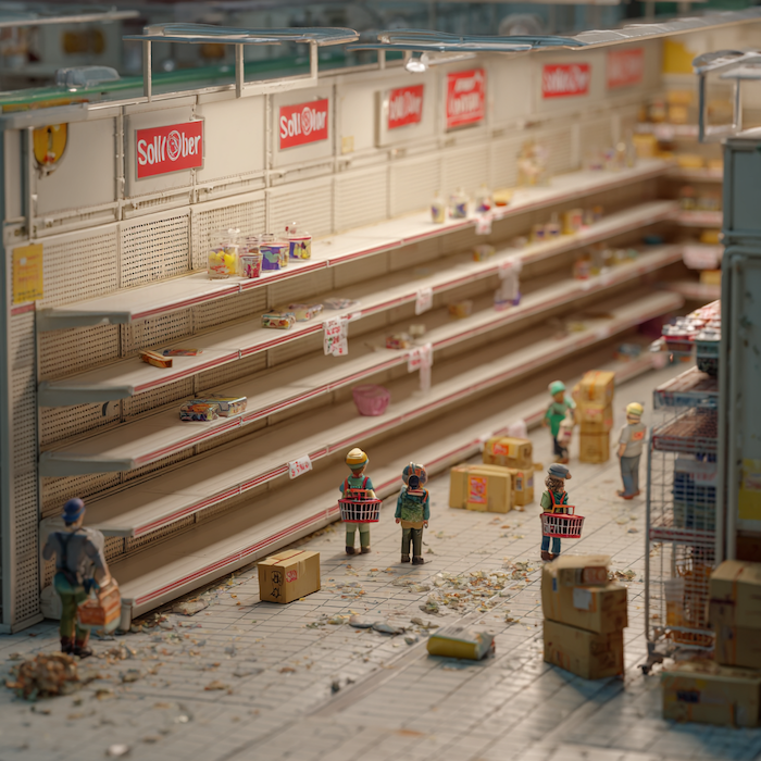 たちまちスーパーの棚は
