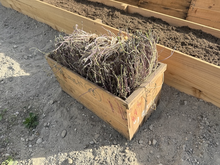 残りの種芋が木箱に入れて